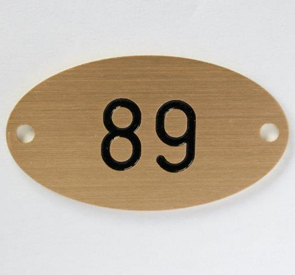 e) ohne Löcher, mit gravierten blanken Zahlen, selbstklebend