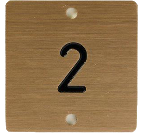 e) ohne Löcher, mit gravierten blanken Zahlen, selbstklebend