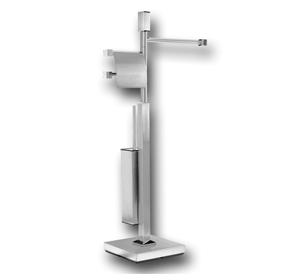eckiges Design, bestehend aus: Handtuchhalter 1-teilig, schwenkbar, Papierrollenhalter mit Deckel und WC-Bürstengarnitur, Höhe: 820 mm Edelstahl, gebürstet Art.-Nr. lose: 9953